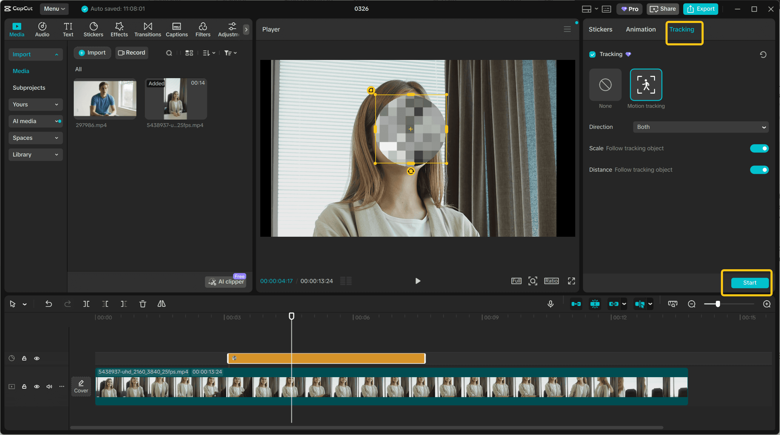 Here's where this simple method becomes surprisingly powerful. If your subject moves slightly—perhaps shifting in their seat, nodding, or making small gestures—CapCut's built-in motion tracking can follow them automatically.