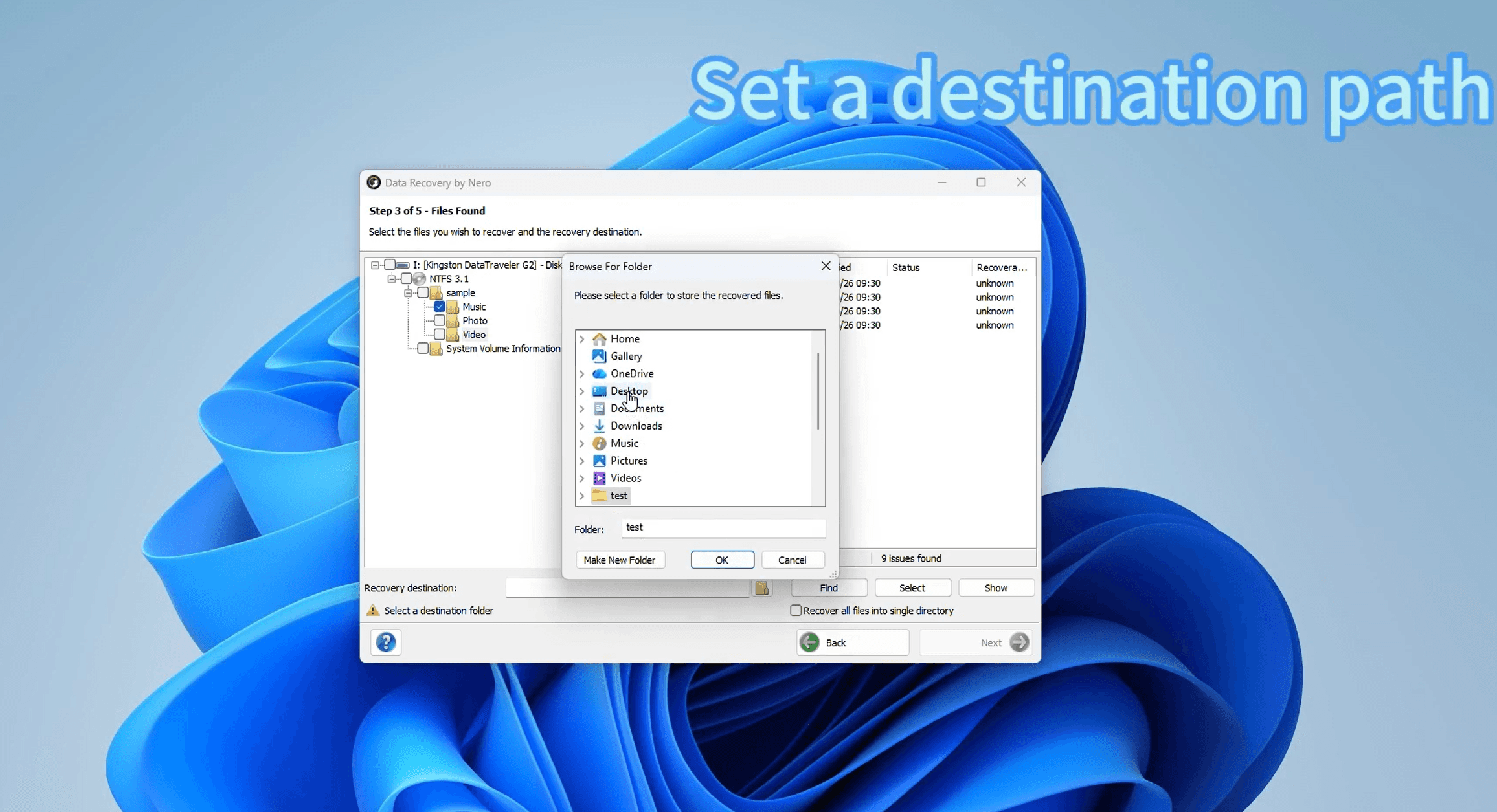 Important: always choose a location different from the USB drive itself — for example, your Desktop or Documents folder.