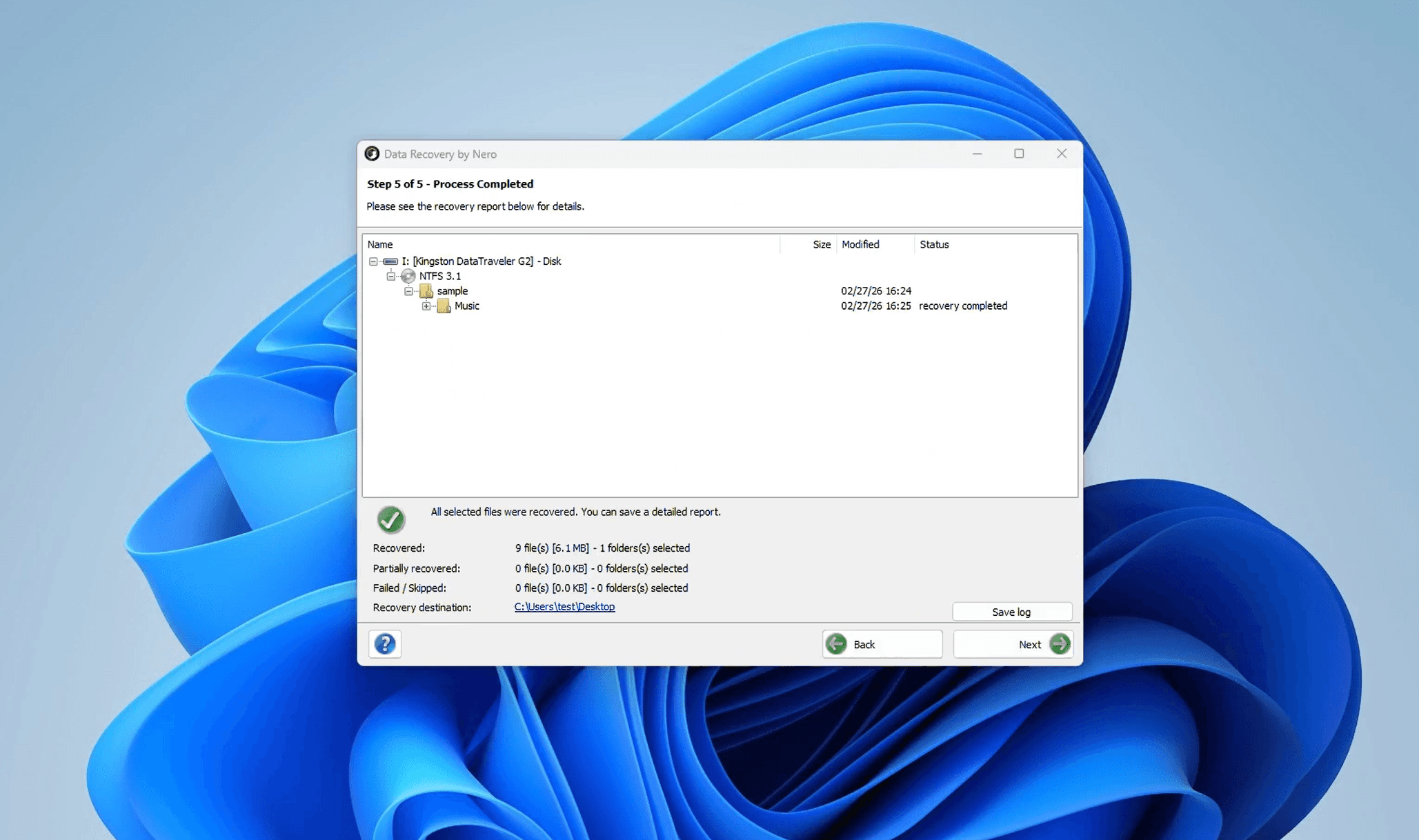 Once finished, a summary screen will show you exactly how many files were recovered and their total size. Navigate to your destination folder and your files will be right there, ready to use.