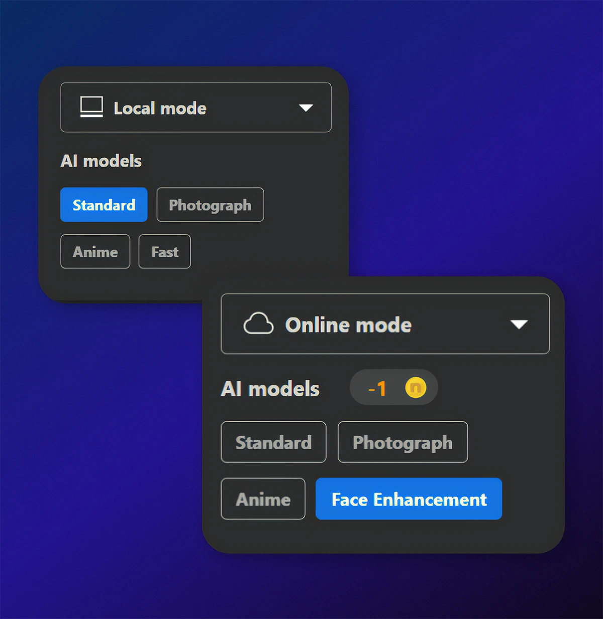 Select the best-fit mode for portraits, landscapes, wildlife, or illustrations. Then choose your upscale level and enhance with one click.