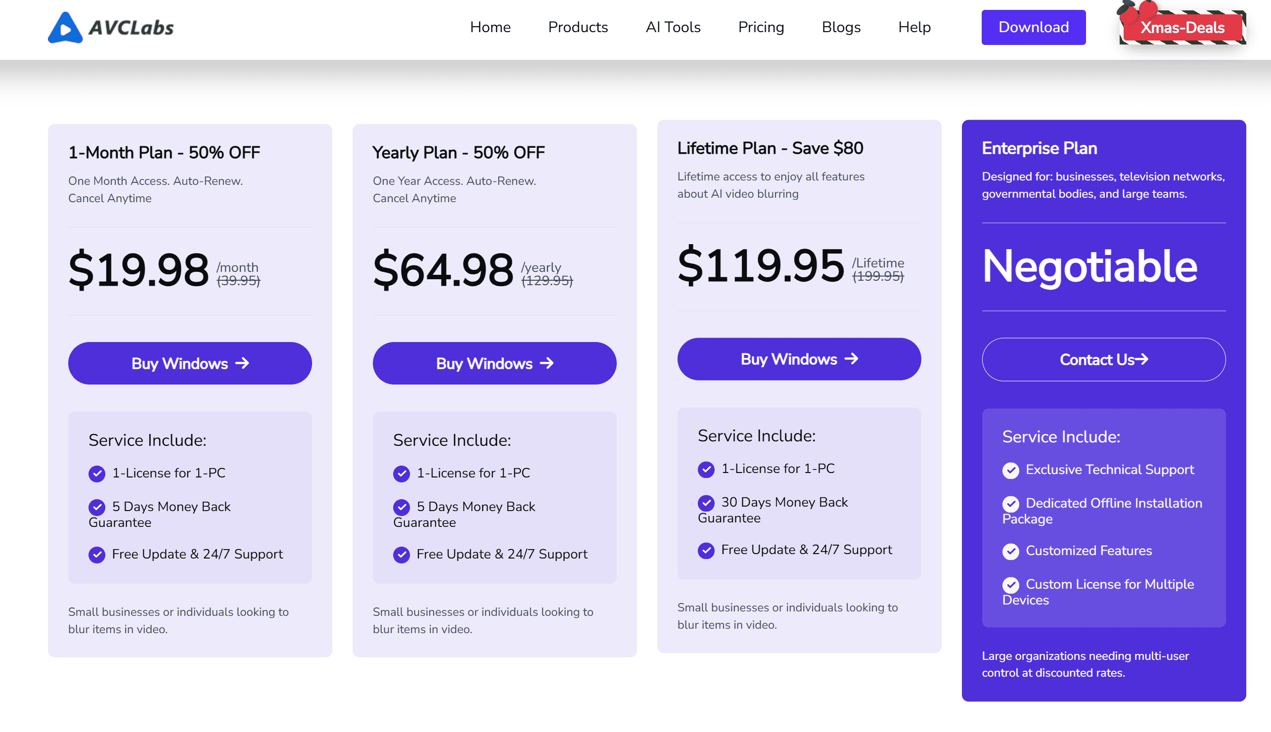 AVCLabs offers three pricing tiers with current promotional discounts:
