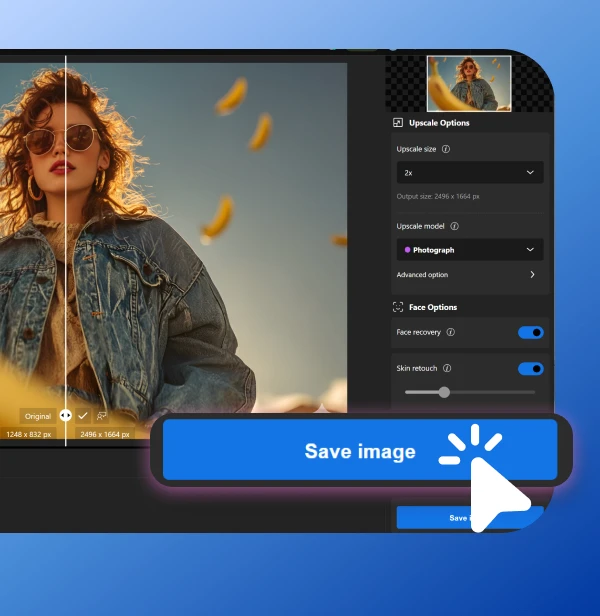 Turn soft, blurry photos into crisp, high-resolution images. Nero AI Image Upscaler uses advanced AI models to unblur image details, remove noise, and upscale up to 16K—online or on your desktop.